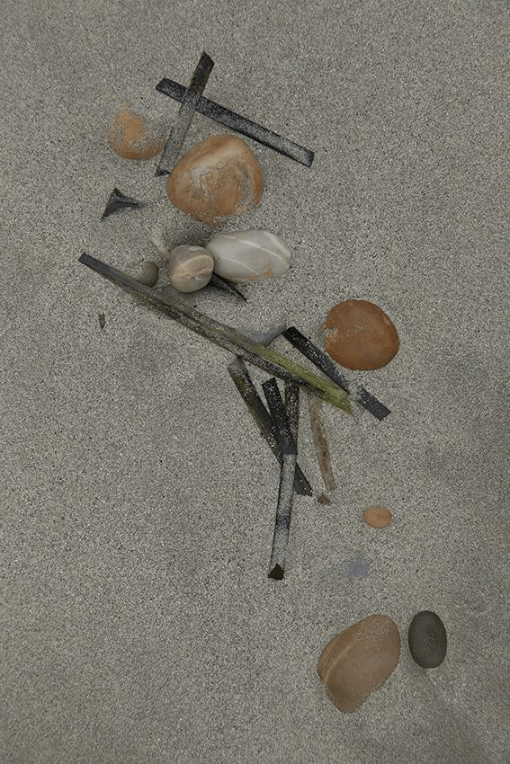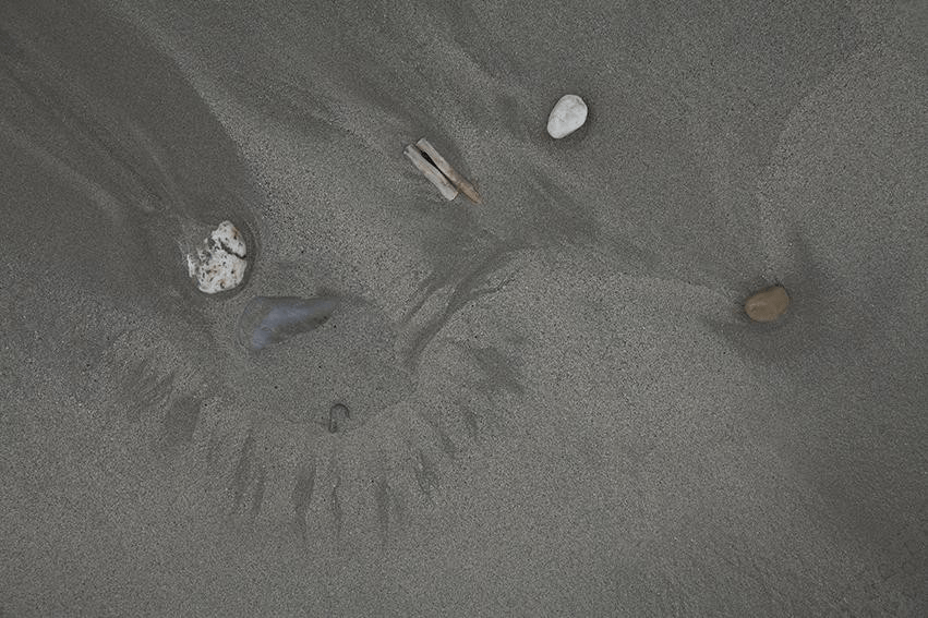 C’était les derniers jours de l’année, l’air était glacial et la lumière voilée. Sous mes pas, des formes et signes luisants étaient disséminées sur un immense tapis de sable, pièces encore humides que la mer venait d’abandonner.