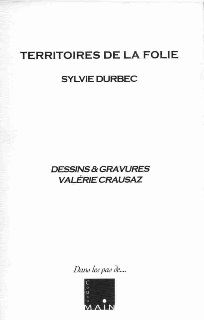 *I testi sono tratti da: Sylvie Durbec, Territori della follia, con disegni e incisioni di Valérie Crausaz, éditions Cousu Main, Carpentras 2008.
