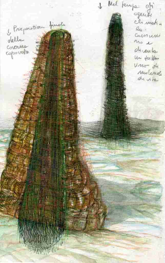 Costruisco una caverna capovolta per fare sentire la forza del vuoto che si mette in comunicazione col pieno esterno del mondo in cui noi circoliamo e cerchiamo noi stessi e il nuovo in noi, la morte per riconoscere la vita.