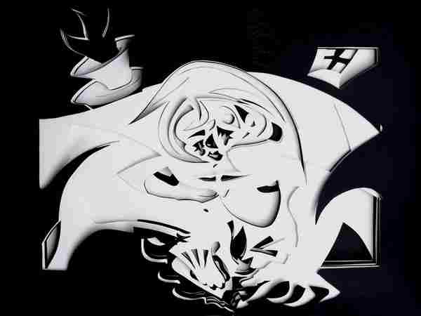 | Grondona riorganizza una costruzione del mondo a partire dalla distruzione del corpo della madre, evento clamoroso e violento della sua vita individuale. La geometria delle sue sculture di cartone, solidi esempi di «vuoto», l’amore per Bacon e la necessità dell’angoscia, sono i compagni quotidiani di questo artista oggi devastato dalla precoce vecchiaia e dalla disperazione psichica ma risoluto a lavorare sempre alla sua opera. La sua ultima mostra, impressionante e feroce, ha come titolo I quadri hanno gli occhi e mi rodono l’anima (Palazzo Stella, 2015), dove Grondona costruisce sculture tridimensionali stratificando cartoncini intagliati e distanziandoli con un materiale plastico che gli permette di infondere profondità alla composizione e di accentuarne l’effetto drammatico, la “verità estatica”: questo, in sintesi, è e resterà il suo “segnetto nel mondo”. |